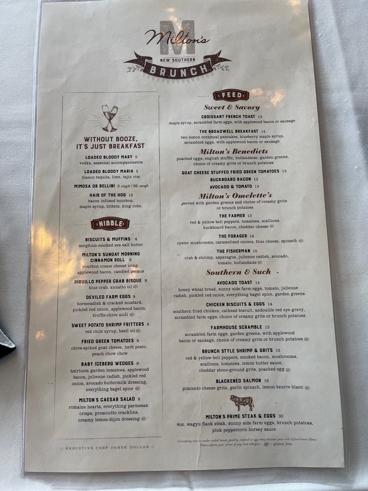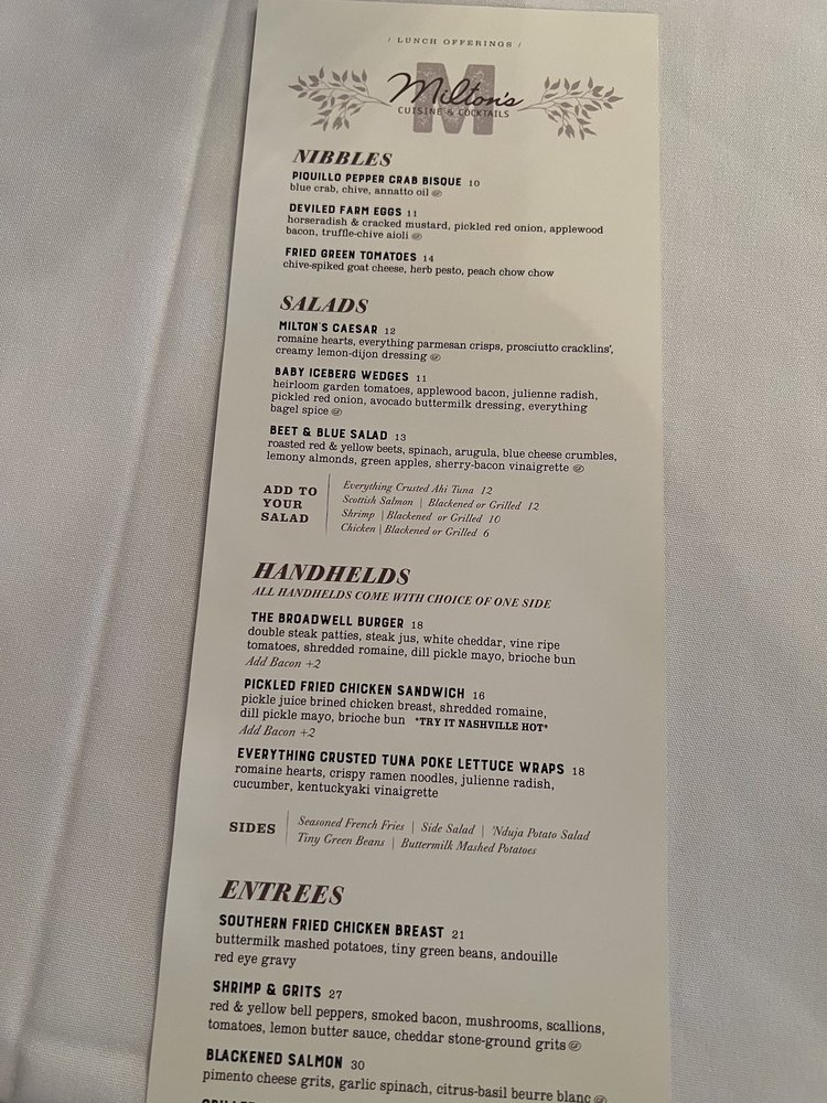 Milton's Cuisine & Cocktails Menu